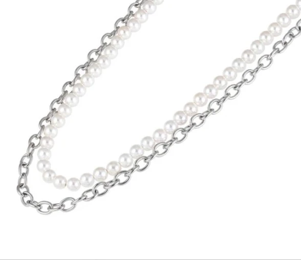 Náhrdelník vyrobený z chirurgické ocel a přírodních perel. Povrch ocelových částí náhrdelníku je leštěný, perličky dodávají náhrdelníku nádech luxusu. Délku náhrdelníku lze nastavit v rozmezí 46-48cm. Perličky mají průměr 6mm, řetízková část náhrdelníku je široká 6mm.Zapínání náhrdelníku je karabinové.