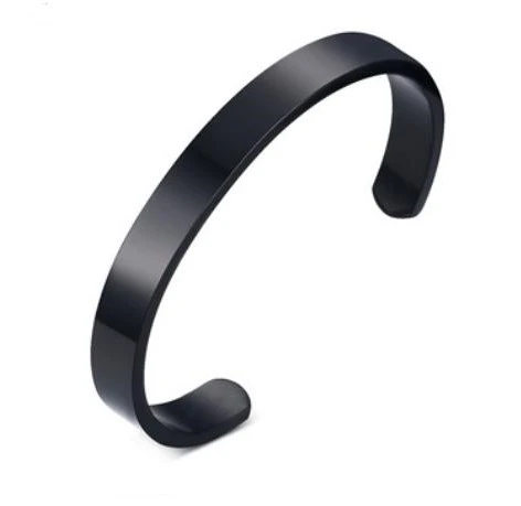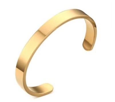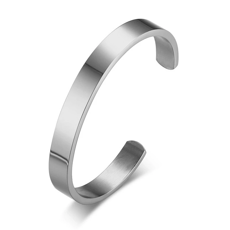Ocelový pevný náramek na ruku z chirurgické oceli. Povrch náramku na pohledových stranách je leštěný, vnitřní strana náramku je matná. Náramek je široký 8 mm, vnitřní průměr náramku 60 mm.