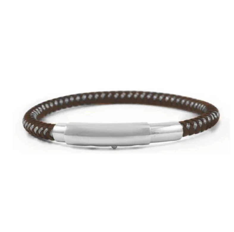 Pevný náramek z chirurgické oceli a kůže Inori INBR122BR