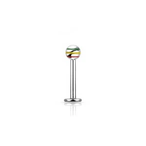 Piercing z chirurgické oceli. Piercing do brady. Piercing má pěkné barevné provedení.