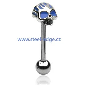 Piercing do jazyka. Piercing z chirurgické oceli s motivem lebky.