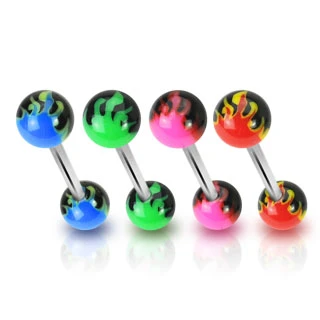 Piercing jazyka se dříkem z chirurgické oceli a bioplastovými kuličkami.
