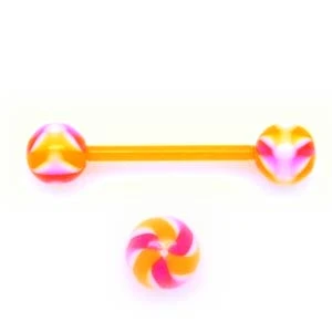 Piercing do jazyku. Piercing z bioplastu. Tento piercig nepoškozuje Vaši zubní sklovinu. Rozměry piercingu: délka dříku 16mm, průměr dříku 1,6mm, průměr kuliček 6mm.