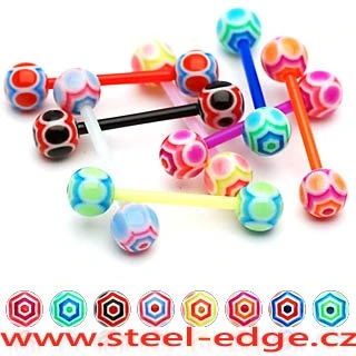 Piercing do jazyku. Piercing z bioplastu. Tento piercig nepoškozuje Vaši zubní sklovinu. Piercing pro Vás. Rozměry 1,6×16×6mm