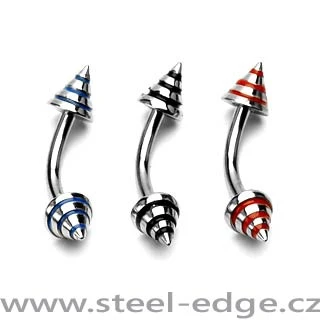 Piercing do obočí z chirurgické oceli 316L. Piercing se dvěma barevnými hroty. Velice pěkný piercing. Rozměry mm 1,2×8×4.