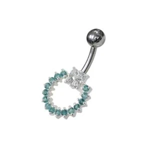 Piercing do pupíku. Dřík piercingu je z chirurgické oceli 316L. Piercing je ozdobený zirkony. Zdobená část piercingu je vyrobena ze stříbra 925. Rozměry piercingu: dřík 1,6105mm, ozdoba 15mm.