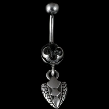 Piercing do pupíku z chirurgické oceli 316L. Piercing je celý ocelový včetně ozdobné části. Dřík piercingu má průměr 1,6mm, délku 10mm, kulička 5mm. Rozměr ozdoby piercingu: kulička má průměr 8mm, závěsná část 15*9mm.