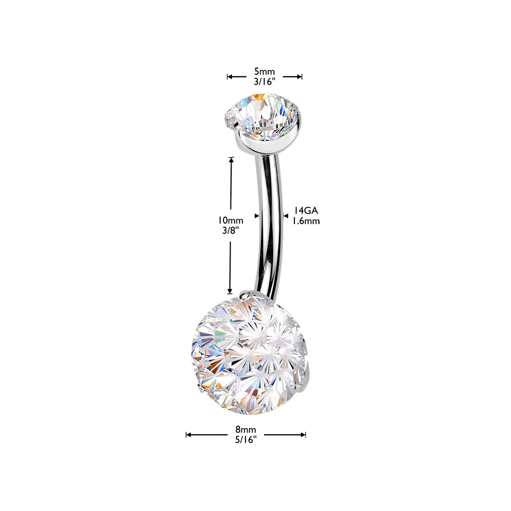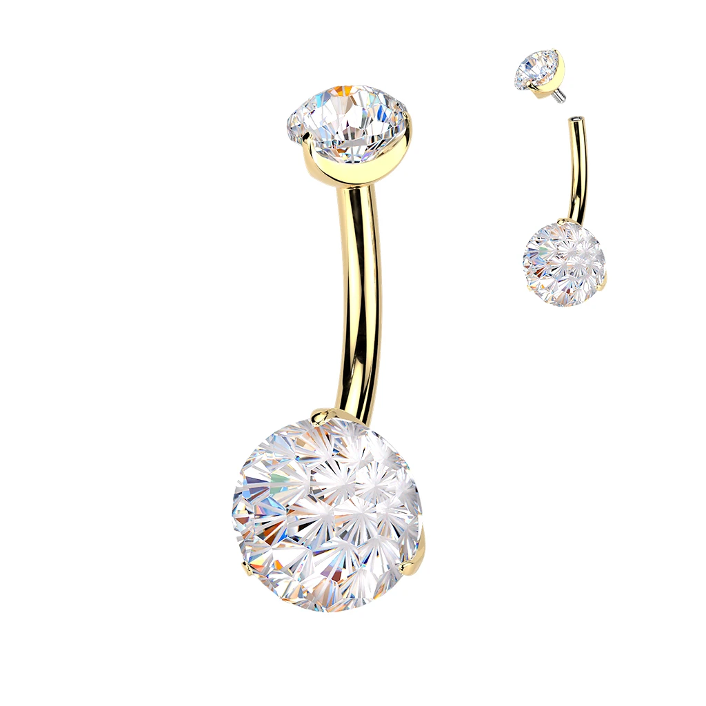 Piercing do břicha vyrobený titanu ASTM F136, který se běžně používá při výrobě tělních implantátů. Piercing je ozdobený zářivými zirkony. Dřík piercingu je dlouhý 10 mm, průměr dříku 1,6 mm. Vrchní šroubovací ozdoba se zirkonem má průměr 5 mm, spodní ozdoba má průměr 8 mm.