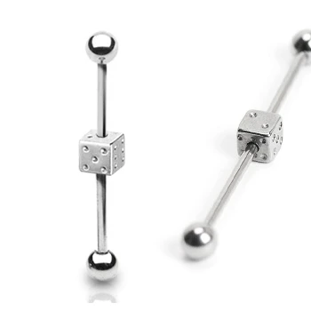 Piercing z chirurgické oceli 316L. Piercing do ucha. Piercing s ozdobou hrací kostky. Rozměry piercingu: kostka 5mm, dřík 1,6mm, průměr kuliček 5mm.