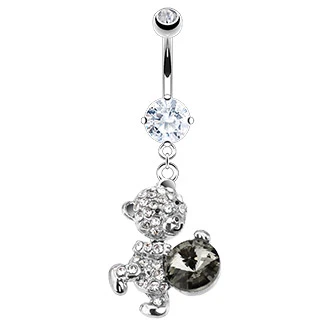 Piercing do pupíku. Piercing s ozdobou. Piercing je ozdobený zirkony. Dřík piercingu a šroubovací kulička jsou vyrobeny z chirurgické oceli 316l, ozdoba je vyrobená z porodiované bižuterie. Dřík piercingu má průměr 1,6mm, délku 10mm. Průměr vrchní kuličky 5mm. Rozměr ozdoby 23*14mm.