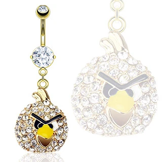 Piercing do pupíku. Dřík piercingu je vyrobený z pozlacené chirurgické oceli 316L. Ozdoba piercingu je pozlacená bižuterie. Piercing je ozdobený zářivými zirkony. Rozměry dříku: délka 10mm, průměr 1,6mm. Ozdoba piercingu má rozměr 18*15mm. Netradiční pozlacený piercing do pupíku.