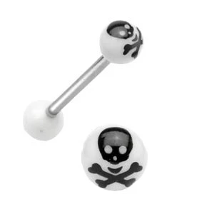 Piercing do jazyka s ozdobou z bioplastu – lebka.