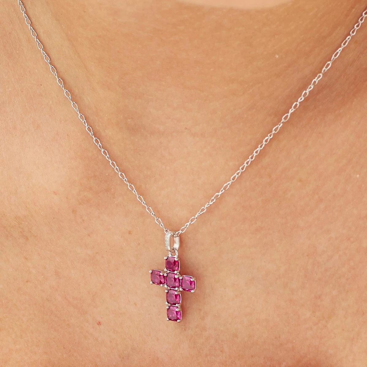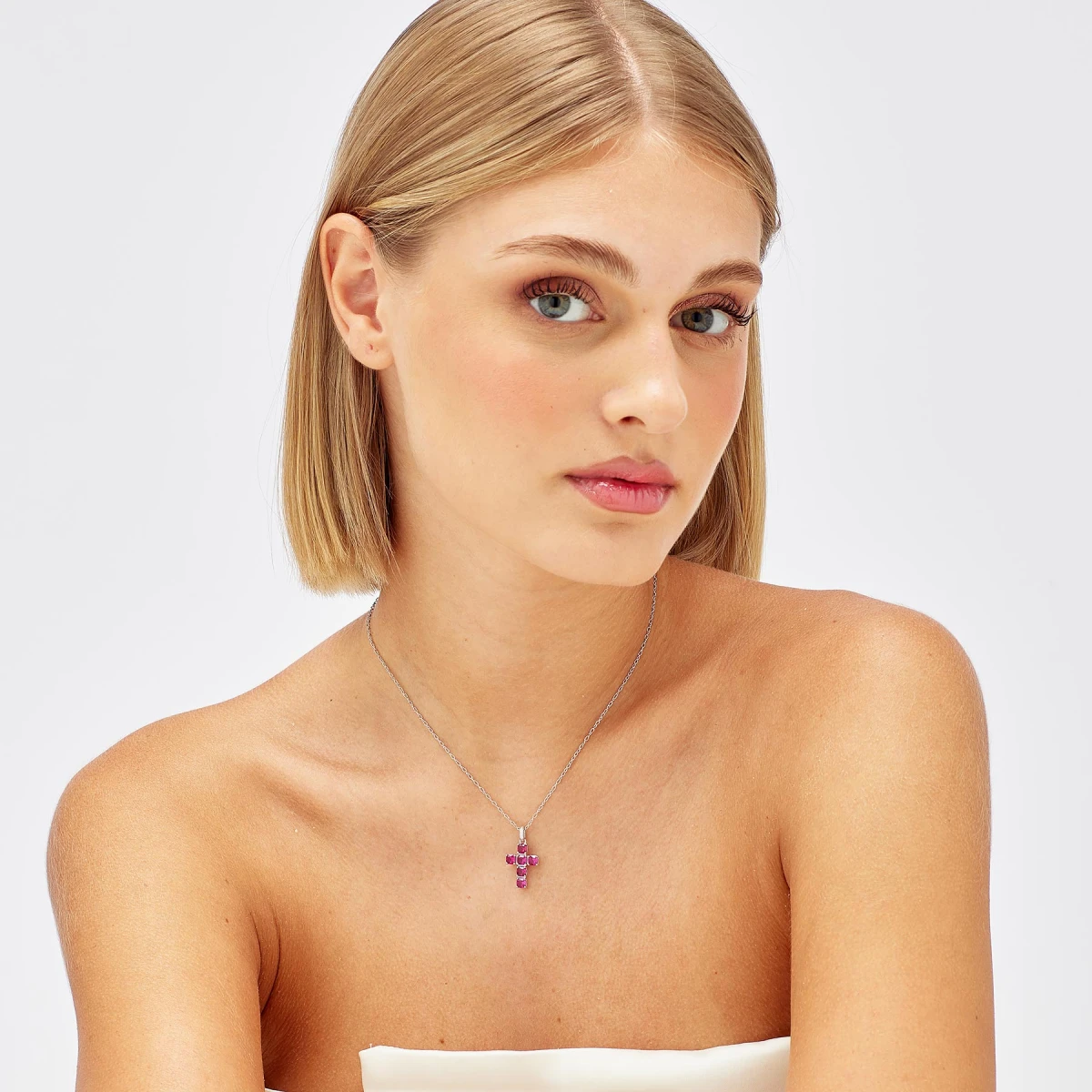 Stříbrný přívěsek křížek ozdobený prvotřídními zirkony. Přívěšek je vyrobený ze stříbra ryzosti 925/1000. Povrch přívěsku je porhodiovaný, úprava rhodiováním zvyšuje odolnost povrchu přívěsku proti poškození a zaručuje dlouhodobý bezchybný vzhled šperku.