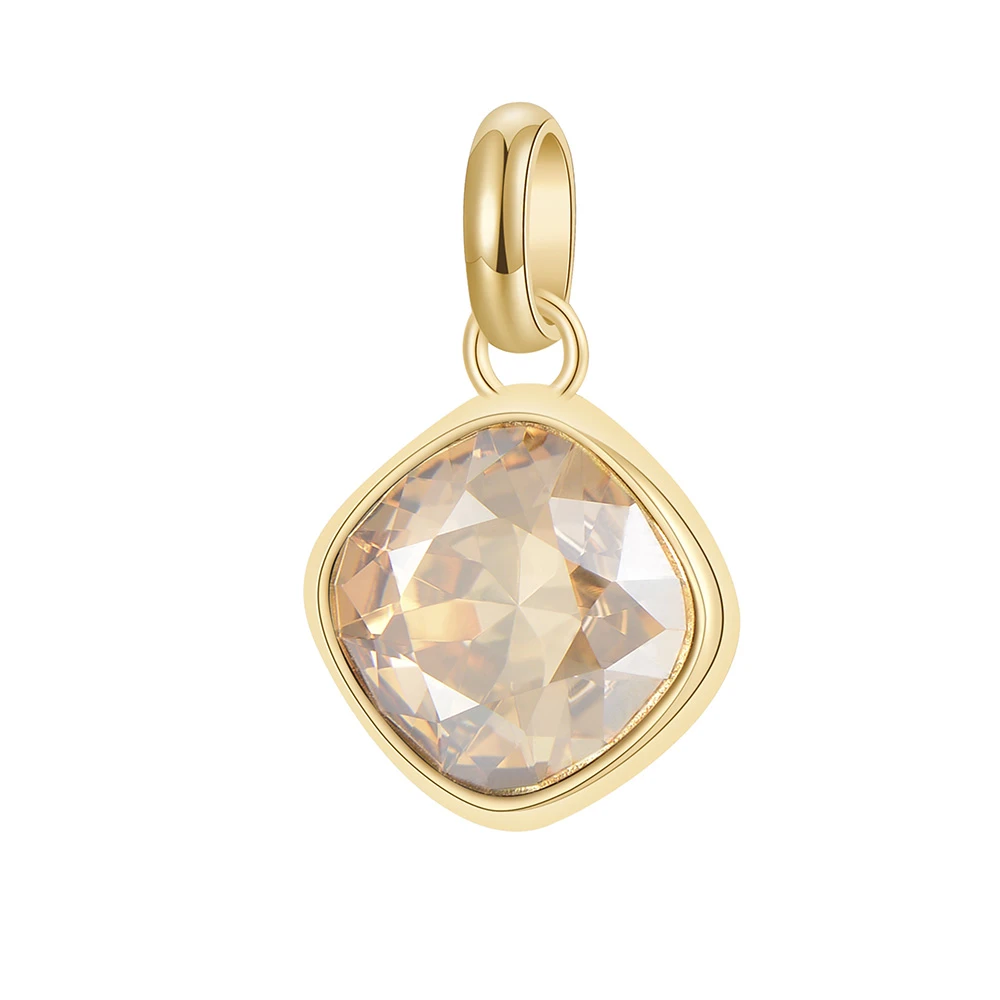 Přívěsek z chirurgické oceli 316l. Přívěsek je osazený krystalem. Povrch přívěsku je částečně pozlacený technologií PVD. Délka přívěšku je 21 mm. Řetízek vhodný na zavěšení přívěsku najdete v sekci řetízky.