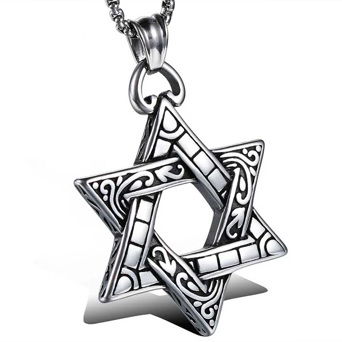Přívěsek a řetízek z chirurgické oceli. Povrch přívěšku je zdobený plastickými vzory. Rozměr přívěsku 35x36mm. K přívěsku náleží řetízek z chirurgické oceli dlouhý 60cm. Průměr řetízku 3mm.