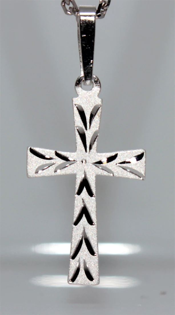 Stříbrný křížek na krk. Křížek vyrobený ze stříbra 925/000. Povrch křížku je zdobený rytinou. Rozměr přívěsku 21x12 mm. Závěsným očkem na křížku lze provléct stříbrný řetízek s průměrem do 1,5 mm.