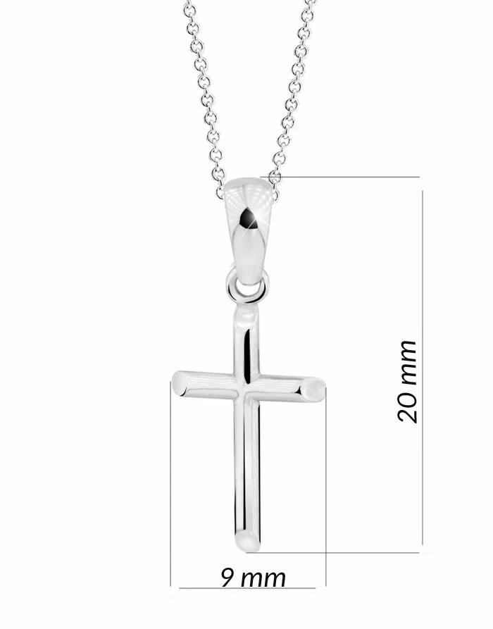Přívěsek na krk křížek z bílého zlata 585/1000. Povrch přívěšku je leštěný. Rozměr křížku 20x9mm najdete vyobrazený na podpůrné fotografii. Závěsným očkem lze provléct zlatý řetízek s maximálním průměrem 2mm. Zlatý řetízek vhodný k přívěsku najdete v sekci zlaté řetízky.