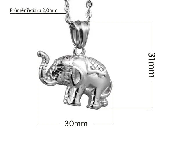 Dlouhý náhrdelník z chirurgické oceli slon.