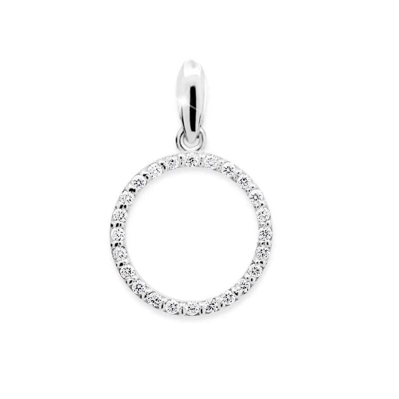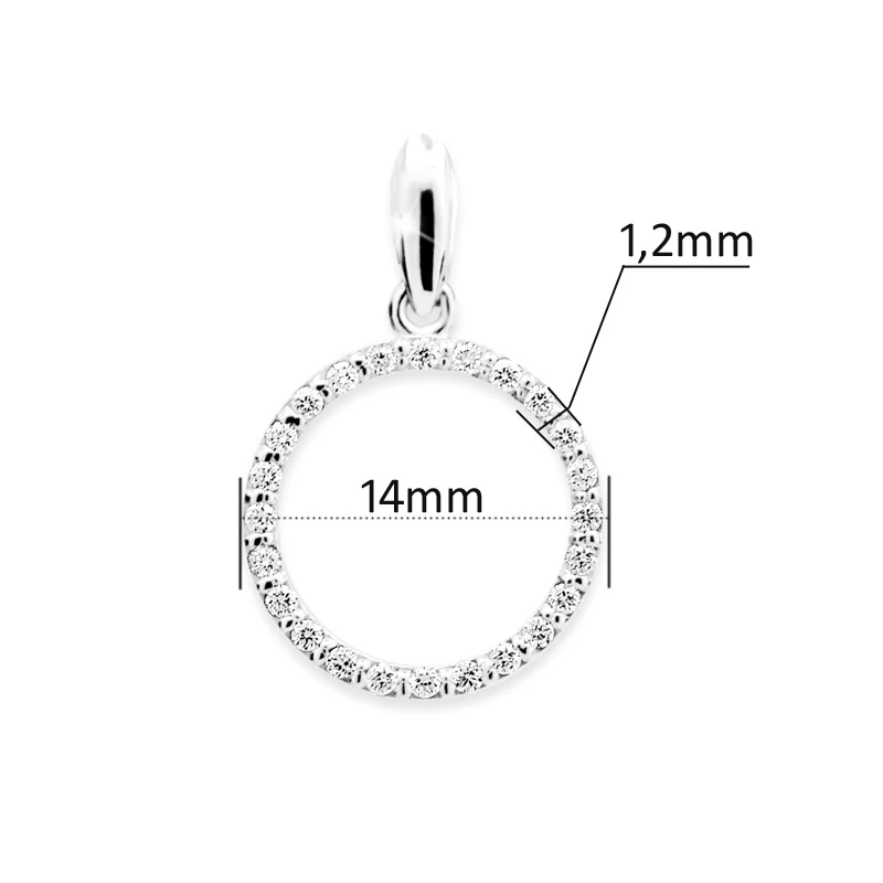 Přívěsek se zirkony z bílého zlata ryzosti 585/1000. Vnější průměr přívěsku 14mm, obroučka široká 1,2mmje hustě osazená třpytivými zirkony. Zlatý řetízek vhodný k přívěsku najdete v kategorii řetízky. Přívěsek zdarma zabalíme do dárkové krabičky a papírové tašky.