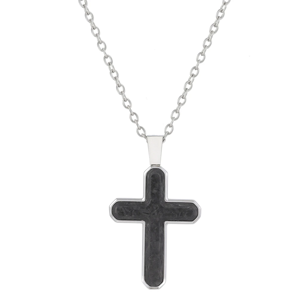 Přívěsek z chirurgické oceli křížek s kovaným uhlíkem + řetízek PSS1176