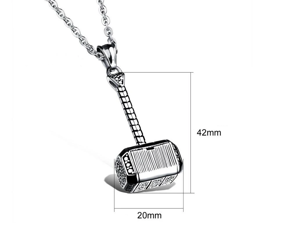 Ocelový přívěsek Thórovo kladivo s řetízkem dlouhým 56cm. Rozměr přívěsku 42x20mm. Povrch Thórova kladiva je zdobený plastikami s černou patinou.