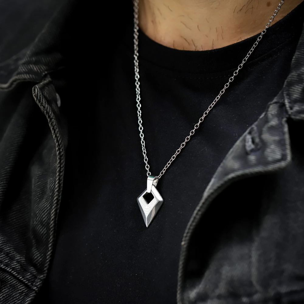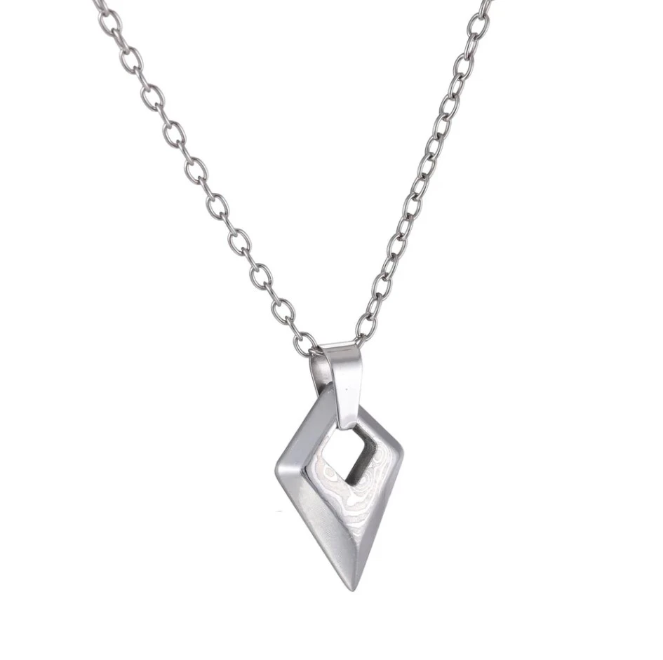 Přívěsek vyrobený z damaškové oceli, která je prosnulá díky své tvrdosti a houževnatosti. Damašková ocel je známá také díky své jedinečné kresbě. Po staletí je tato ocel používaná při výrobě nožů, zbrojí a šperků. Neváhejte po pořiďte si tento jedinečný přívěsek ještě dnes.
