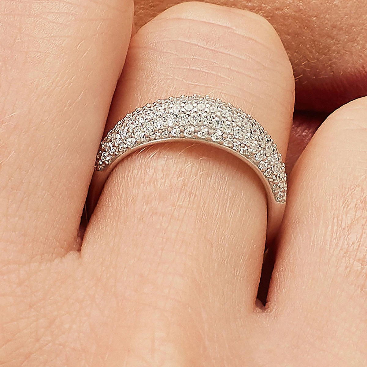 Dámský prstýnek se zirkony vyrobený ze stříbra 925/1000. Povrch prstýnku je porhodiovaný. Úprava stříbra rhodiování dodává prstenu jasnou barvu a lesk. Rhodium zvyšuje odolnost povrchu proti poškrábání a zabezpečuje prstenu dlouhodobý bezvadný vzhled. Prvotřídní zirkony dodávají prstenu luxusní vzhled.