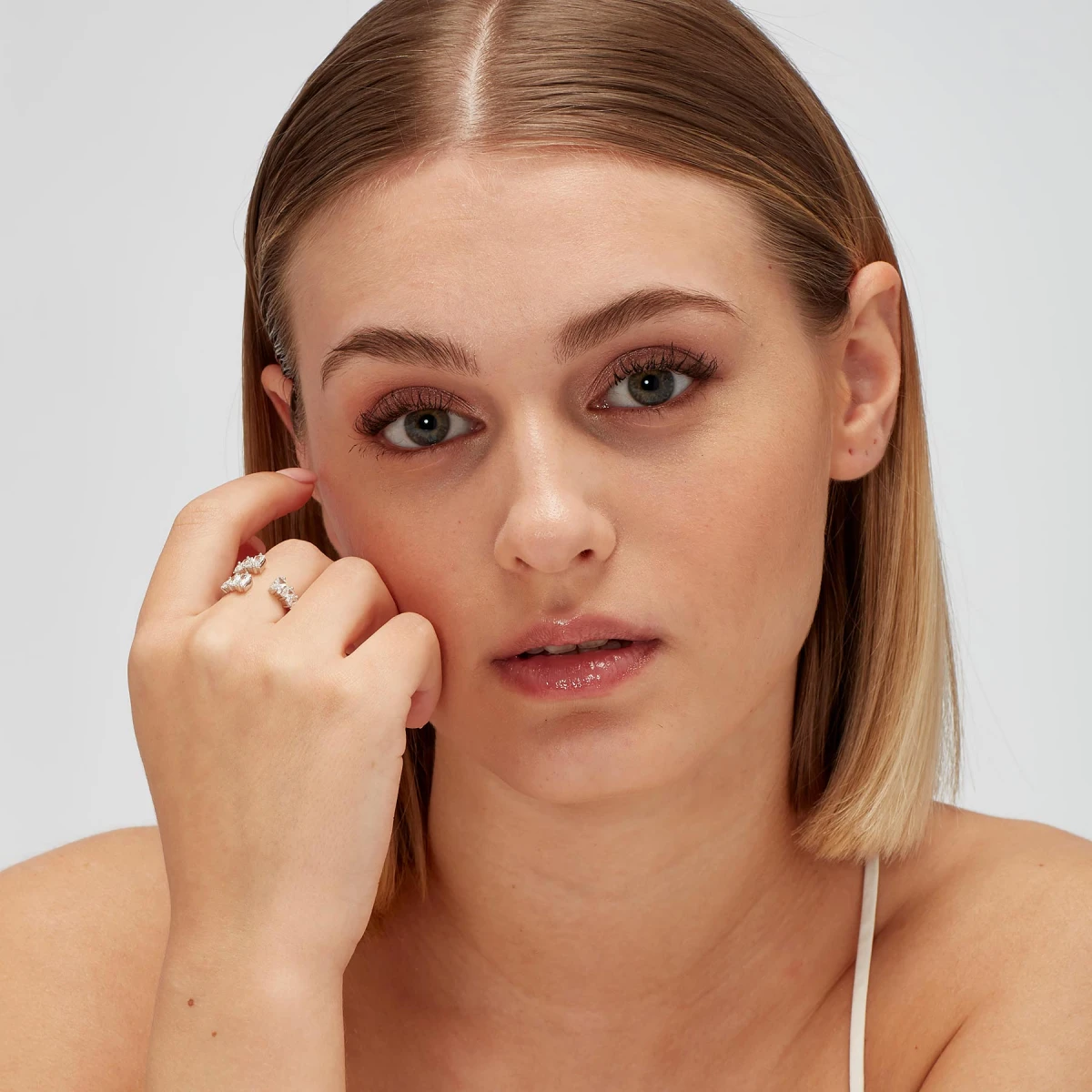 Prsten ze stříbra ryzosti 925/100. Povrch prstenu je porhodiovaný. Úprava prstenu rhodiováním mu dodává jasnou barvu s leskem a zajišťuje jeho dlouhodobý bezchybný vzhled. Prstýnek je ozdobený prvotřídními zirkony.