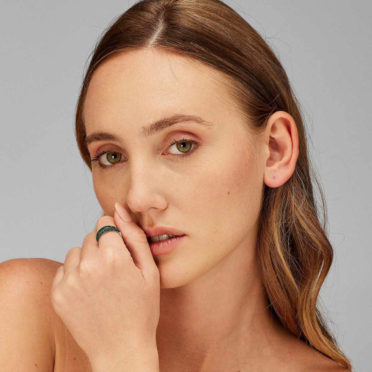 Dámský prstýnek se zirkony vyrobený ze stříbra 925/1000. Povrch prstýnku je porhodiovaný. Úprava stříbra rhodiování dodává prstenu jasnou barvu a lesk. Rhodium zvyšuje odolnost povrchu proti poškrábání a zabezpečuje prstenu dlouhodobý bezvadný vzhled. Prvotřídní zirkony dodávají prstenu luxusní vzhled.