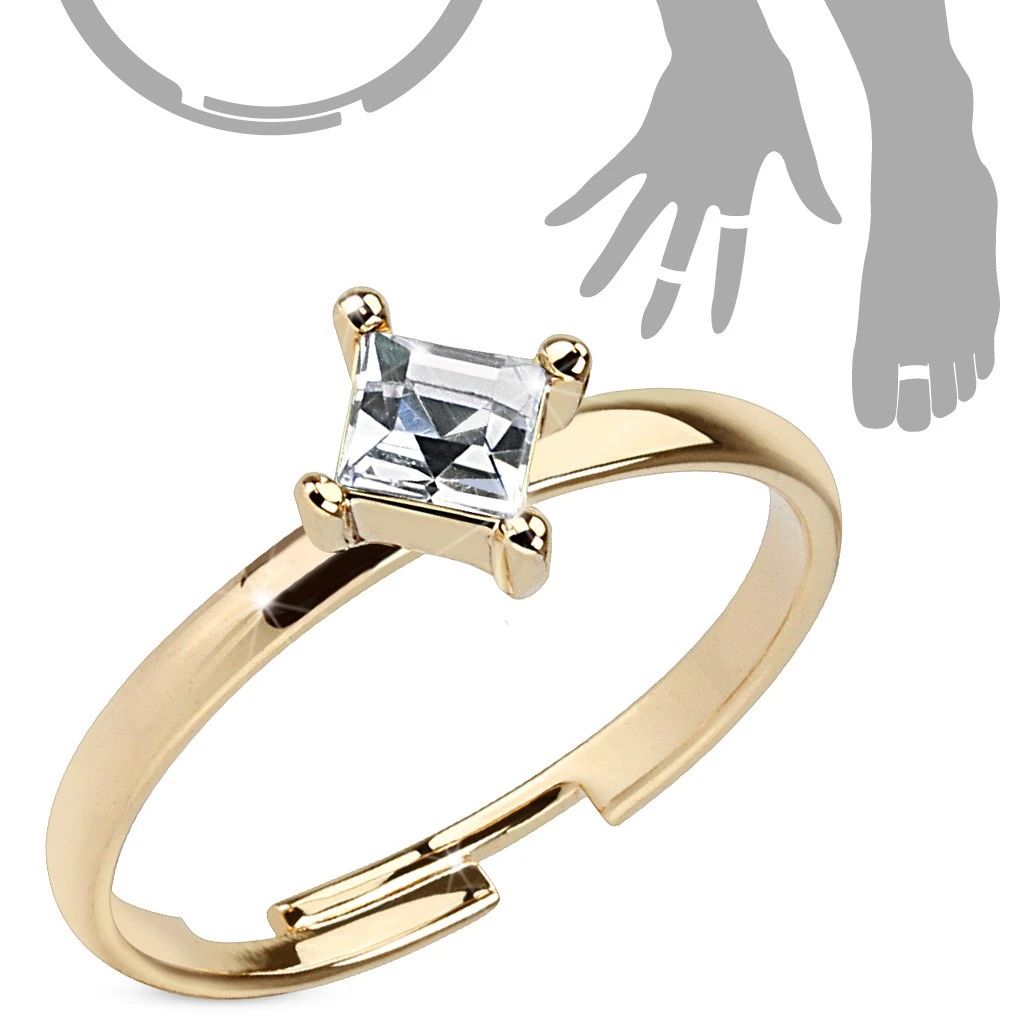 Prstýnek na nohu z bižuterie. Obroučka prstenu je široká 2 mm, základní vnitřní průměr prstýnku 17 mm lze jednoduše zvětšit roztažením.