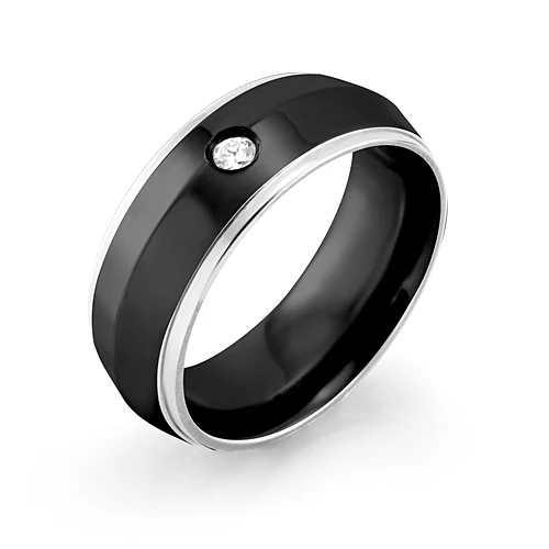 Prsten vyrobený z chirurgické oceli 316L. Prsten má leštěný povrch. Prsten kombinuje černou barvu s ocelí. Prsten je široký 8mm. Prsten zdobí zirkon.
