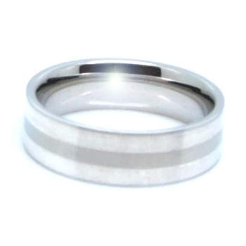 Prsten z chirurgické oceli 316L. Prsten má matný povrch. Prsten má po obvodě dva proužky. Prsten je široký 7mm. Prsten lze použít jako snubní.