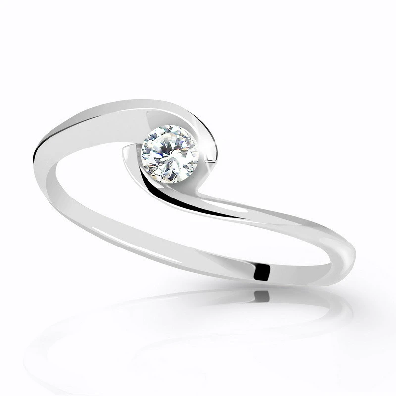 Zlatý zásnubní prsten z bílého zlata 585/1000 osazený kvalitním diamantem. Rozměry prstenu najdete vyobrazené na podpůrném obrázku. Briliant zasazený v prstenu má hmotnost 0,160 ct hodnoceným na základě tvz, 4C tříd: