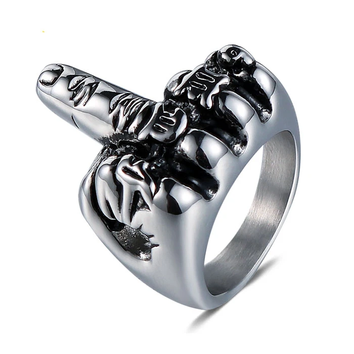Prsten z chirurgické oceli Fuck Off! Masivní prsten, který díky použité chirurgické oceli má všechny vlastnosti, pro které jsou šperky z chirurgické oceli stále velmi oblíbeními a vyhledávanými doplňky. Ocelové prsteny nevyvolávají alergické reakce, neoxidují, nemění barvu a jsou odolné proti poškození. Především pro tyto vlastnosti jsou prsteny a ostatní šperky z chirurgické oceli stále oblíbené a stále vyhledávané.