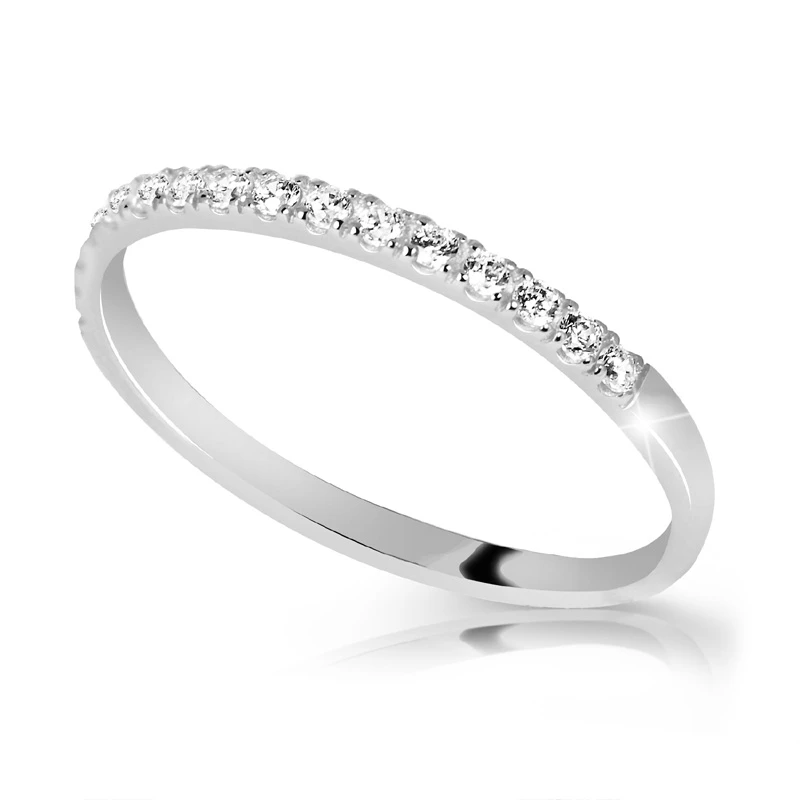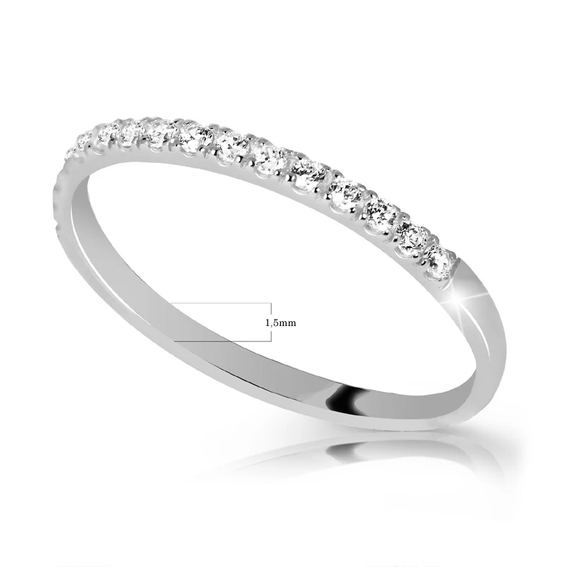 Zlatý prstýnek se zirkony z bílého zlata ryzosti 585/1000. Jemný dámský prstýnek široký 1,5mm, který díky zářivým zirkonům určitě nepřehlédnete.
