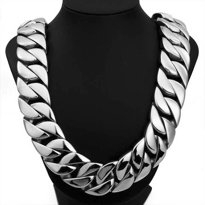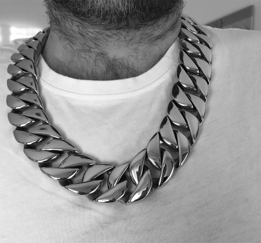 Masivní ocelový řetízek s leštěným povrchem. Řetěz na krk dlouhý 70cm, šířka 32mm. Zapínání řetízku je na masivní klip. Robusní ocelový řetízek na krk. Hmotnost řetězu 860g.