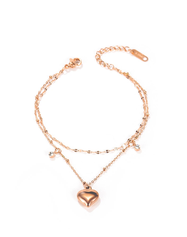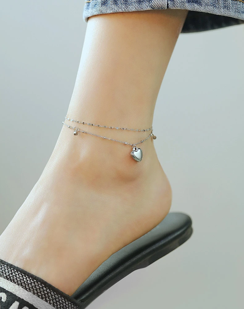 Řetízek na nohu z chirurgické oceli. Řetízek je zdobený zdobená zirkony a přívěskem srdce o velikosti 12x11mm. Povrch řetízku je leštěný. Délku řetízku lze nastavit v rozmezí 21-25cm.