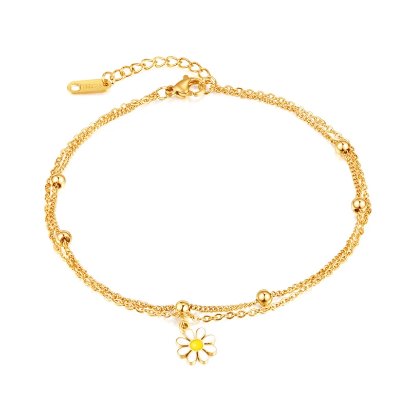 Ocelový řetízek na kotník s ozdobou kopretinového květu.