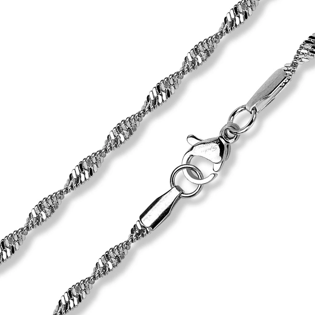 Řetízek z chirurgické oceli má všechny vlastnosti typické pro ocelové šperky jakými jsou odolnost proti poškození, nevyvolávání alergických reakcí, barevná stálost. Ocelové šperky neoxidují a jsou za příznivou ceny při srovnání se šperky z drahých kovů.