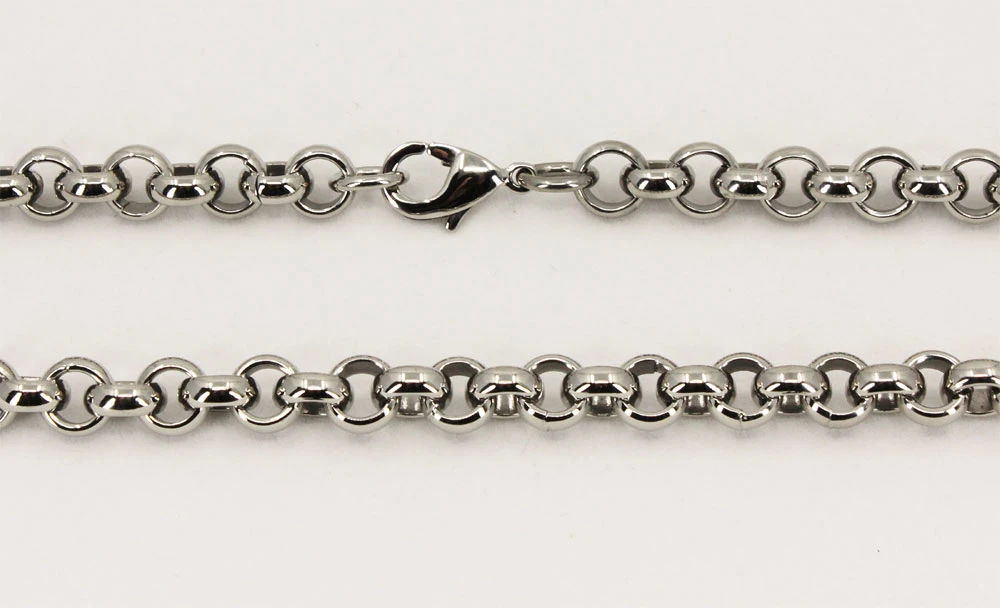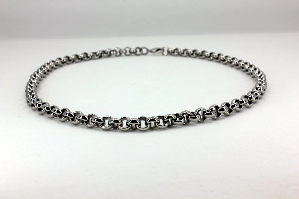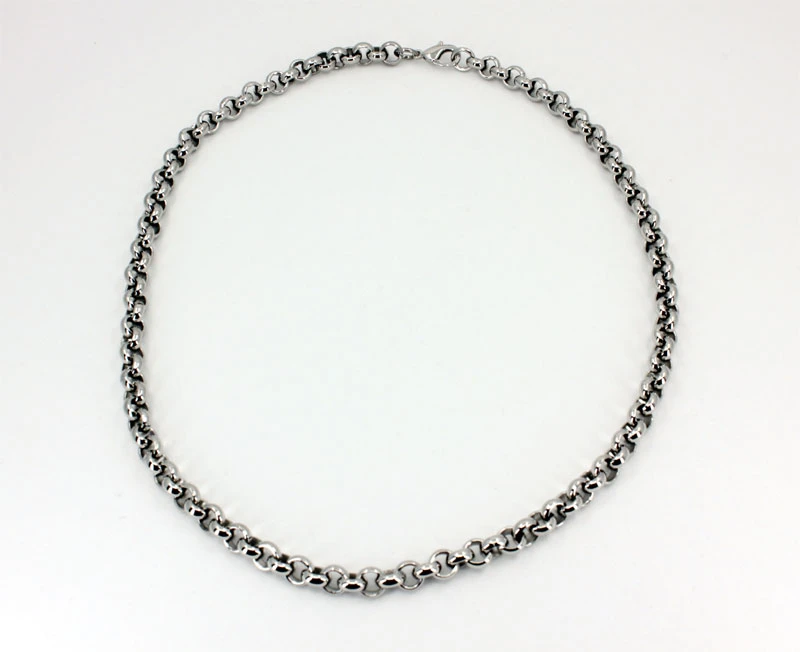 Řetízek na krk z chirurgické oceli. Povrch řetízku je leštěný. Kulaté články mají průměr 7mm. Zapínání řetízku je karabinové.