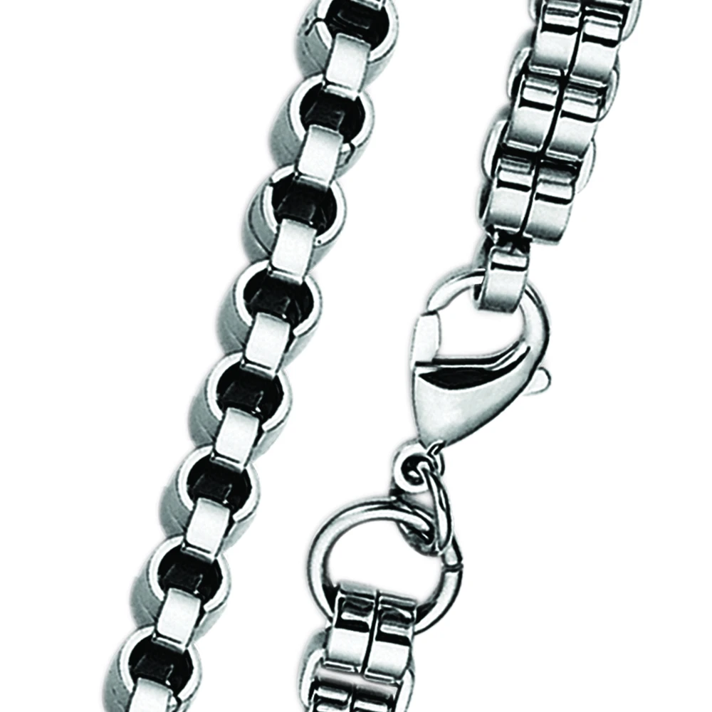Stylový odolný řetízek z chirurgické oceli. Povrch řetízku je leštěný. Řetízek má zapínání na pohodlný a spolehlivý karabinkový uzávěr. Řetízek je široký 9mm, délka řetízku 55cm. Pro individuální dopasování řetízku lze jeho délku na přání zdarma zkrátit.