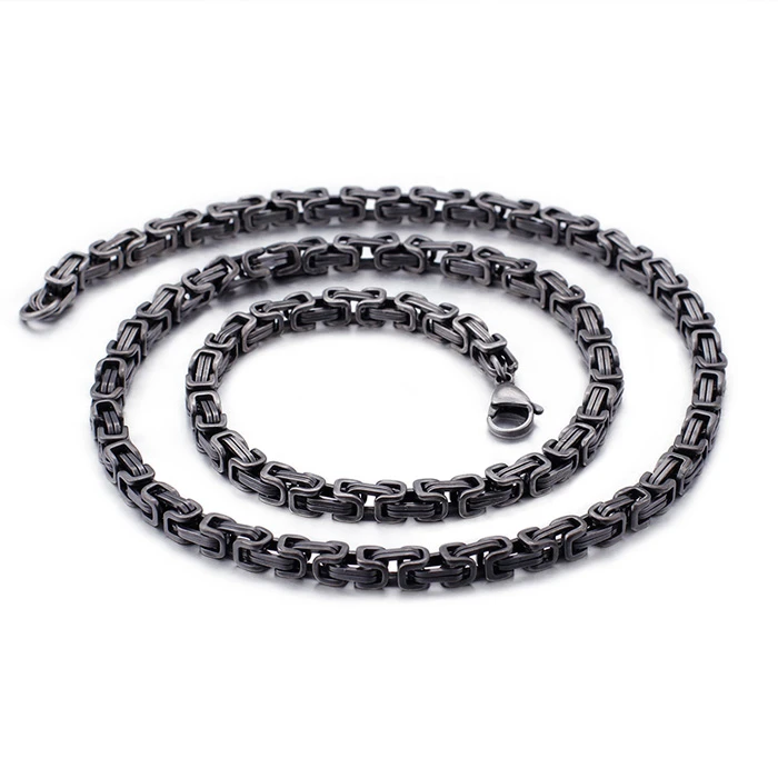 Řetízek na krk z chirurgické oceli. Povrch řetízku má barvu pistolové šedi. Řetízek se zapínáním na karabinu. Řetízek má čtvercový tvar 4x4mm. Na přání lze řetízek zdarma zkrátit.