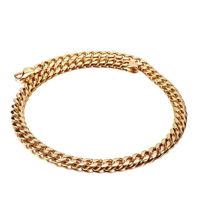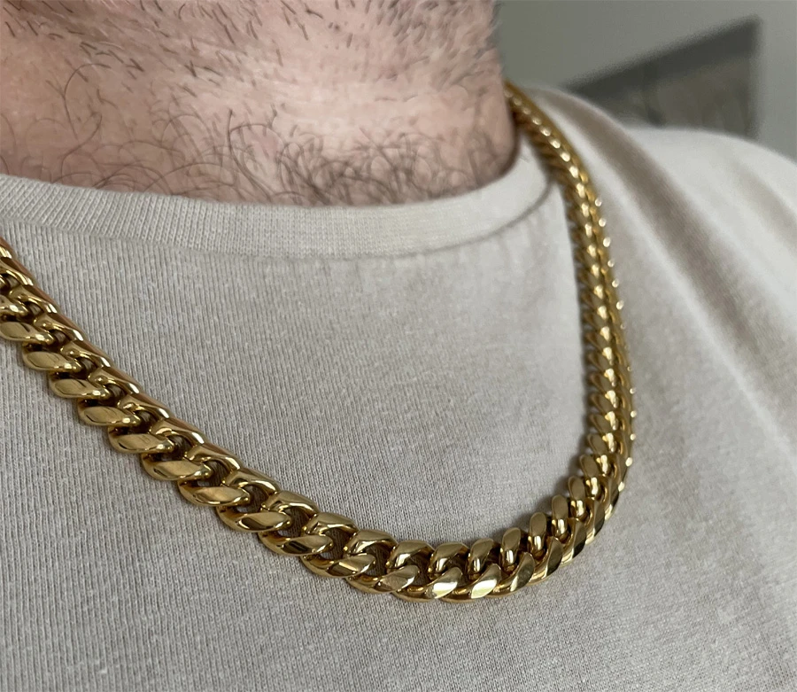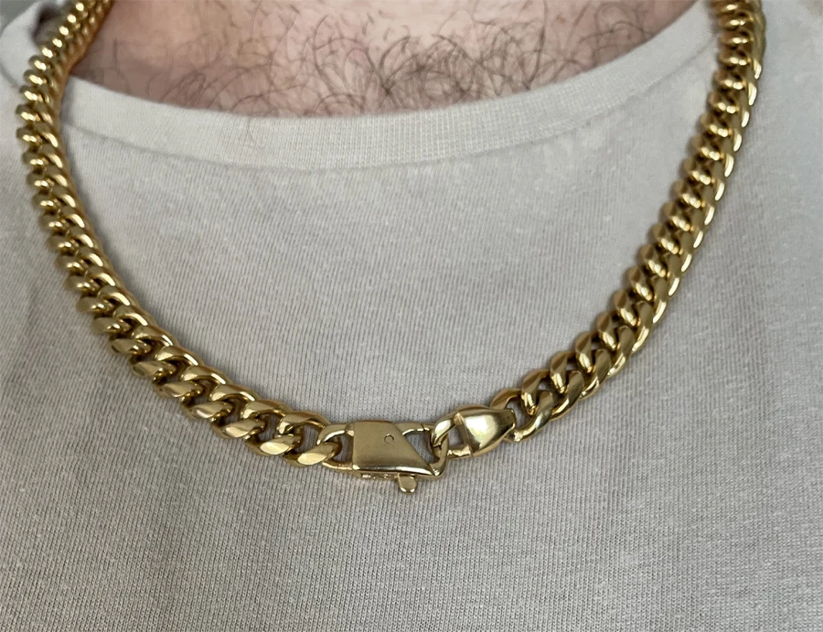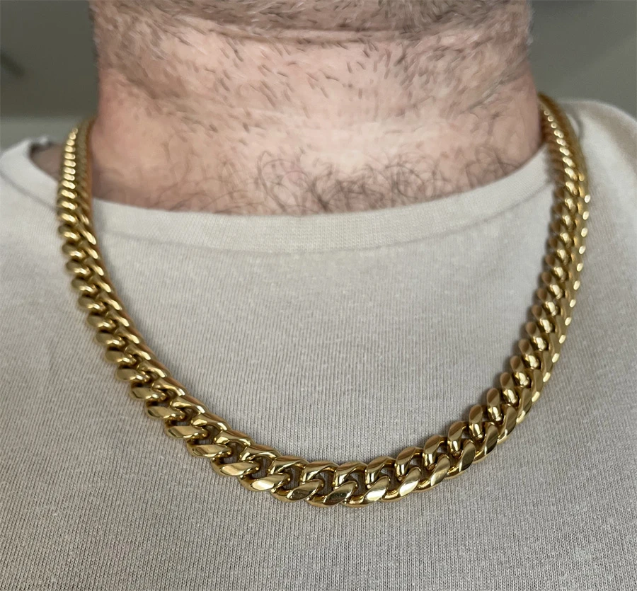 Řetízek na krk z chirurgické oceli. Ocelový řetízek klasického typu Pancr. Povrch řetízku je leštěný pozlacený technologií PVD. Zapínání řetízku je karabinové. Řetízek je široký 9mm.