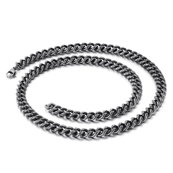 Řetízek na krk z chirurgické oceli. Povrch řetízku má barvu pistolové šedi. Délka řetízku 66cm. Řetízek má karabinové zapínání. Šířka řetízku 8mm. Na přání lze řetízek zdarma zkrátit.
