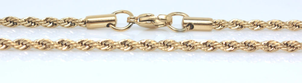 Ocelový řetízek s povrchem upraveným technologií PVD na zlatou. Povrch řetízku je leštěný. Řetízek má karabinové zapínání. Průměr řetízku 3mm, délka 60cm.