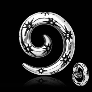 Piercing z chirurgické oceli. Roztahovák ucha. Piercing je ozdobený černými hvězdami. Šířka piercingu 6mm.