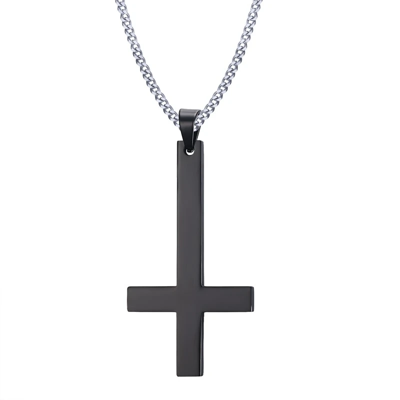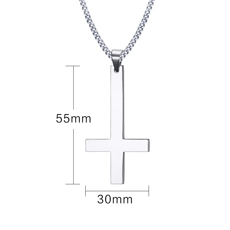 Přívěsek satanský kříž. Povrch kříže je leštěný. Rozměr 55x30 mm. Ke kříži náleží ocelový řetízek dlouhý 60 cm.