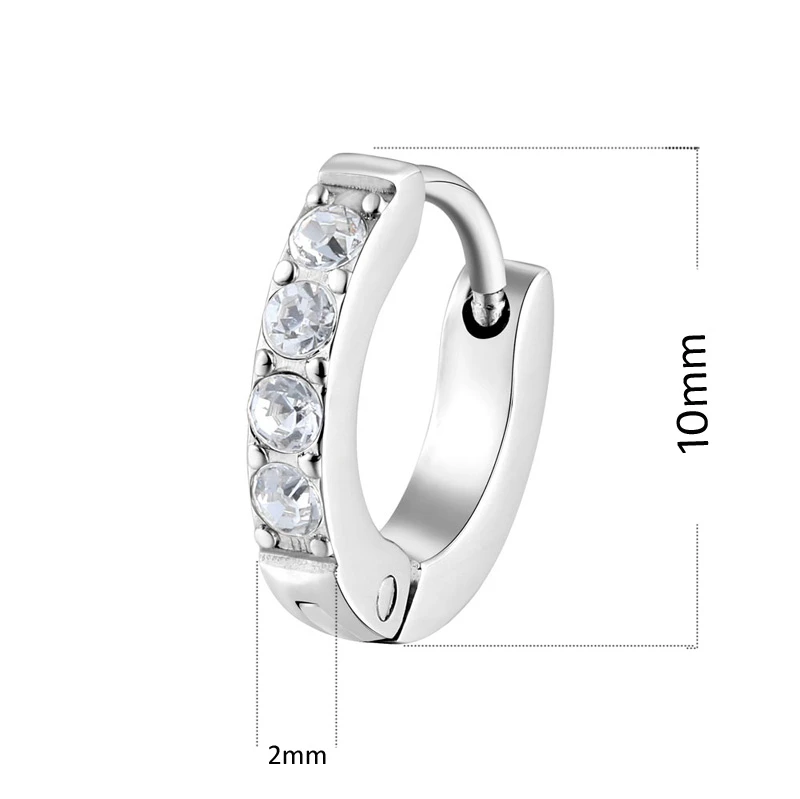 Náušnice kroužek z chirurgické oceli 316l ozdobené zirkony. Povrch náušnice je upravený technologií PVD na zlatou. Vnější průměr náušnice 10mm, šířka 2mm. Vzhledem k rozměrů lze tuto náušnici nosit také děti. Uvedená cena platí za jednu náušnici.