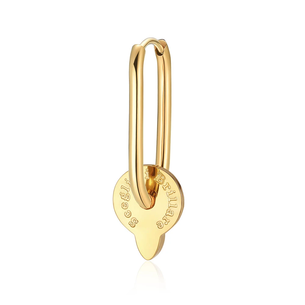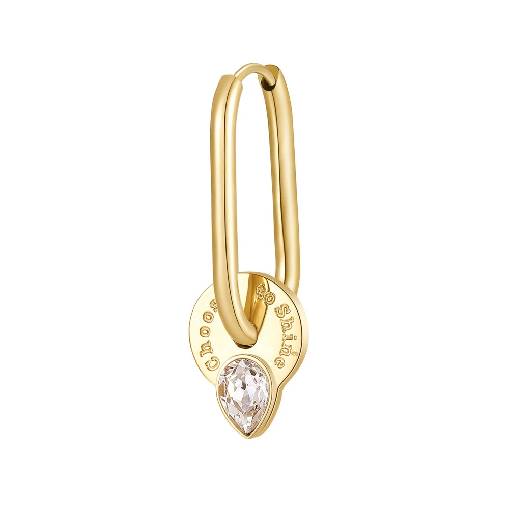 Visací náušnice z chirurgické oceli 316l s krystalem. Náušnice mají leštěný povrch pozlacený technologií PVD. Náušnicové zapínání je kloubové. Velikost náušnice je 29 mm. Uvedená cena platí za jednu náušnici, nikoliv za pár.