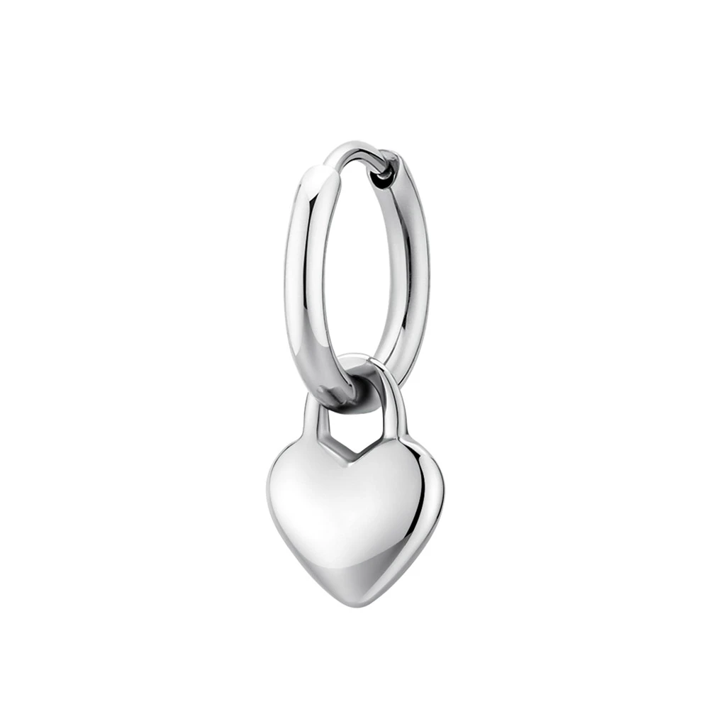 Náušnice kroužek z chirurgické oceli 316l s leštěným povrchem. Kroužek je ozdobený přívěskem srdíčka. Náušnicové zapínání kloubové. Moderní náušnice kroužky s vnějším průměrem 18mm. Uvedená cena platí ze jednu náušnici.